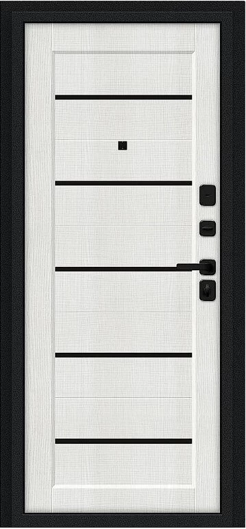Надежная входная Дверь Браво Борн/SBlack Букле черное/Bianco Melinga премиум класса по цене 30 959 руб. Большая толщина стали защитит от проникновения в ваш дом, квартиру или коттедж. Используется очень качественная фурнитура: замки, цилиндры, ручки, защелки. Покрытие и отделка двери изготовлено под внимательным контролем производителя. Дверь имеет долгий срок службы и гарантию.