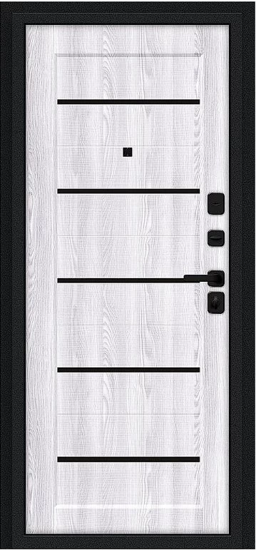 Надежная входная Дверь Браво Борн/SBlack Букле черное/Riviera Ice премиум класса по цене 30 959 руб. Большая толщина стали защитит от проникновения в ваш дом, квартиру или коттедж. Используется очень качественная фурнитура: замки, цилиндры, ручки, защелки. Покрытие и отделка двери изготовлено под внимательным контролем производителя. Дверь имеет долгий срок службы и гарантию.