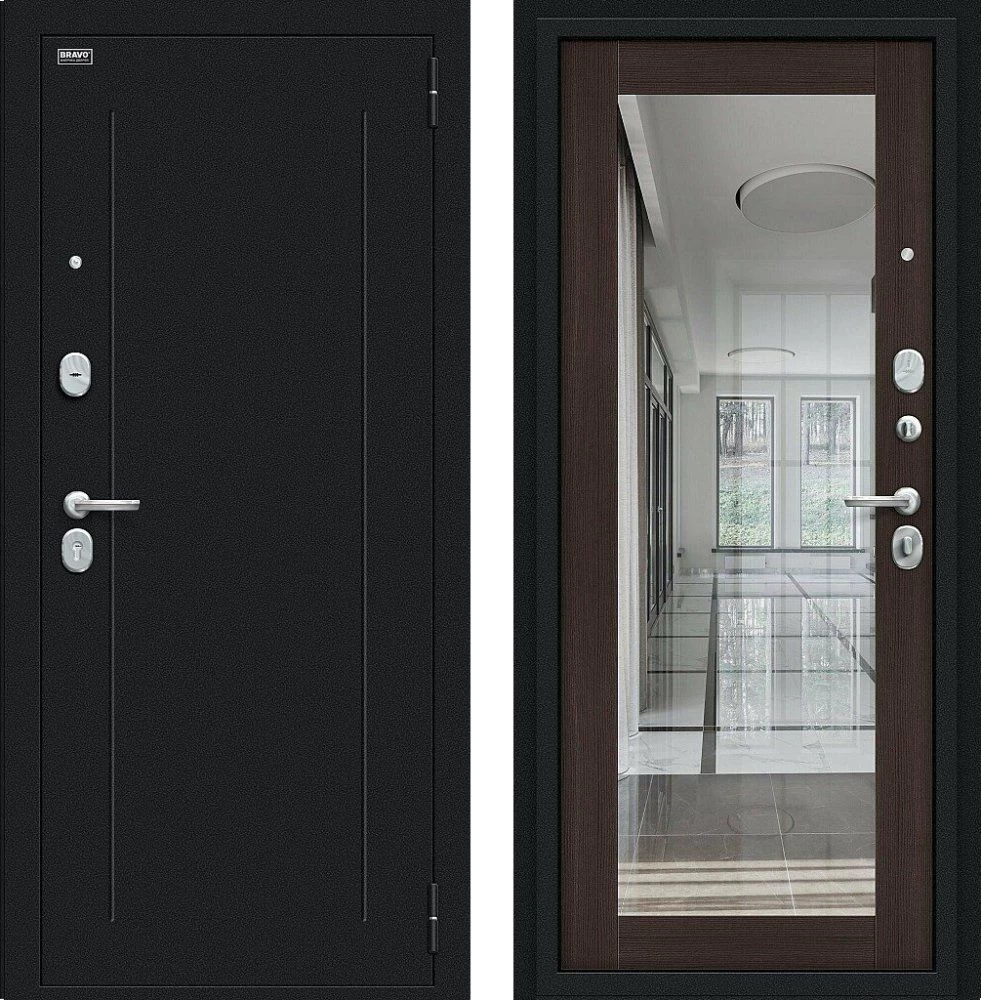 Надежная входная Дверь Браво Флэш Букле черное/Wenge Veralinga премиум класса по цене 32 409 руб. Большая толщина стали защитит от проникновения в ваш дом, квартиру или коттедж. Используется очень качественная фурнитура: замки, цилиндры, ручки, защелки. Покрытие и отделка двери изготовлено под внимательным контролем производителя. Дверь имеет долгий срок службы и гарантию.
