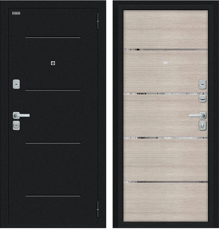 Надежная входная Дверь Браво Лайн/BChrome Букле черное/Cappuccino Melinga премиум класса по цене 31 159 руб. Большая толщина стали защитит от проникновения в ваш дом, квартиру или коттедж. Используется очень качественная фурнитура: замки, цилиндры, ручки, защелки. Покрытие и отделка двери изготовлено под внимательным контролем производителя. Дверь имеет долгий срок службы и гарантию.