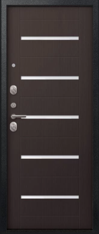 Надежная входная Дверь V-05 Черный муар - Темная лиственница премиум класса по цене 41 309 руб. Большая толщина стали защитит от проникновения в ваш дом, квартиру или коттедж. Используется очень качественная фурнитура: замки, цилиндры, ручки, защелки. Покрытие и отделка двери изготовлено под внимательным контролем производителя. Дверь имеет долгий срок службы и гарантию.